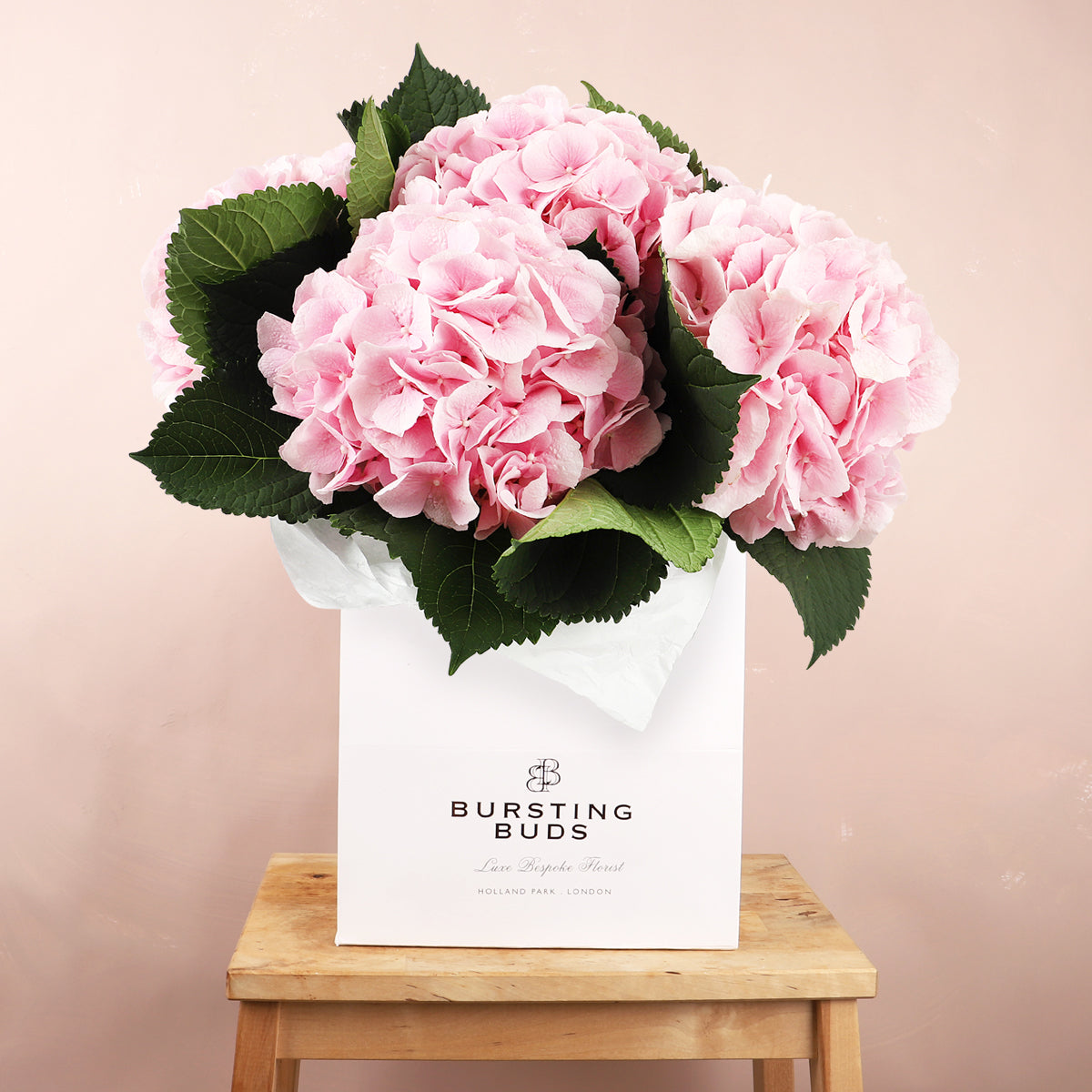 Celebrate the arrival of a baby girl with this gorgeous bouquet. Our creators of bespoke bouquets have carefully crafted this arrangement featuring beautiful pink hydrangeas, finished with seasonal greens. It’s the perfect way to express your joy and congratulations.