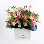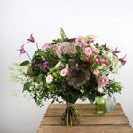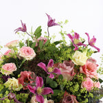 Indulge in the soft and delicate beauty of our Blush Tones bouquet. Featuring a stunning combination of Memory Lane roses, pink spray roses, clematis, ammi, rice flower, and lush greens, this bouquet exudes romance and elegance. Handcrafted with care and expertly arranged, each bloom is perfectly placed to create a mesmerizing display of natural beauty. Perfect for any occasion, treat yourself or someone special to the ultimate luxury experience with our Blush Tones bouquet.