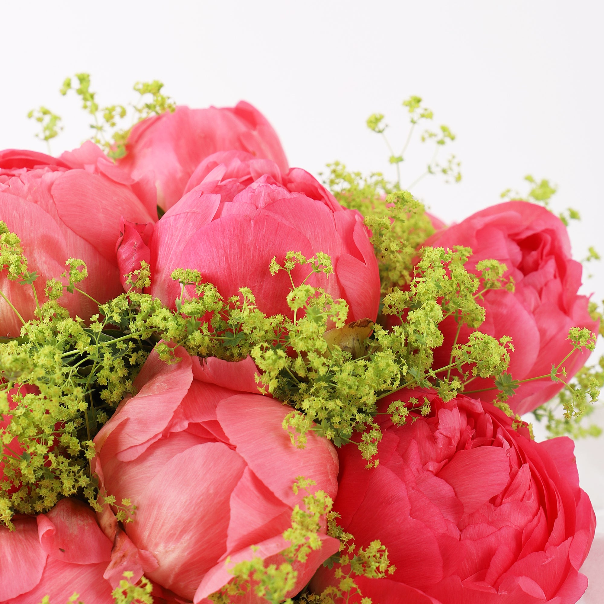 Introducing the beautiful and elegant Coral Peonies bouquet where the beauty of nature is captured in the most exquisite way. The captivating coral peonies blend seamlessly with the delicate Achille Morris. The combination of these two blooms transports you to a world of beauty and wonder.
