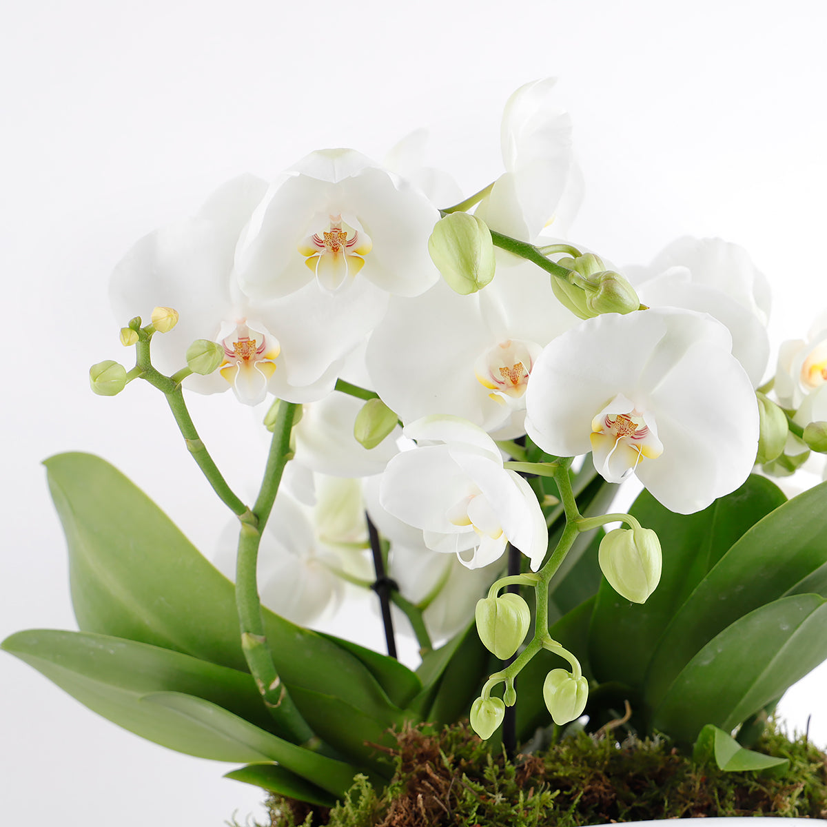 Combining simplicity, elegance, and low-maintenance appeal, this quartet thrives in bright, indirect light. Water only when the medium begins to dry and maintain moderate indoor humidity—ideal for both novice and seasoned orchid lovers. The Phalaenopsis Quartet Harmony offers a timeless expression of refined luxury that continues to enchant long after delivery.