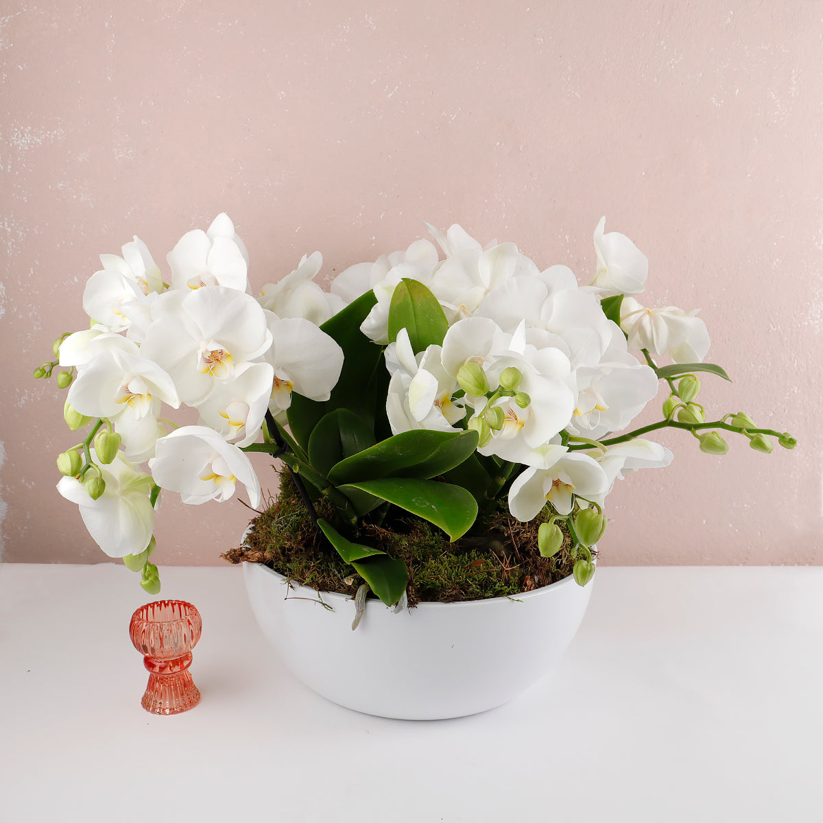 Each orchid is chosen for its robust blooms and enduring quality, offering premium beauty in a modest footprint. The ceramic vase may vary in colour or material depending on availability—ensuring every piece is distinctly charming and seasonally curated.