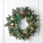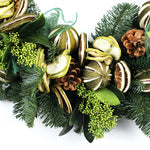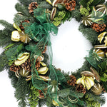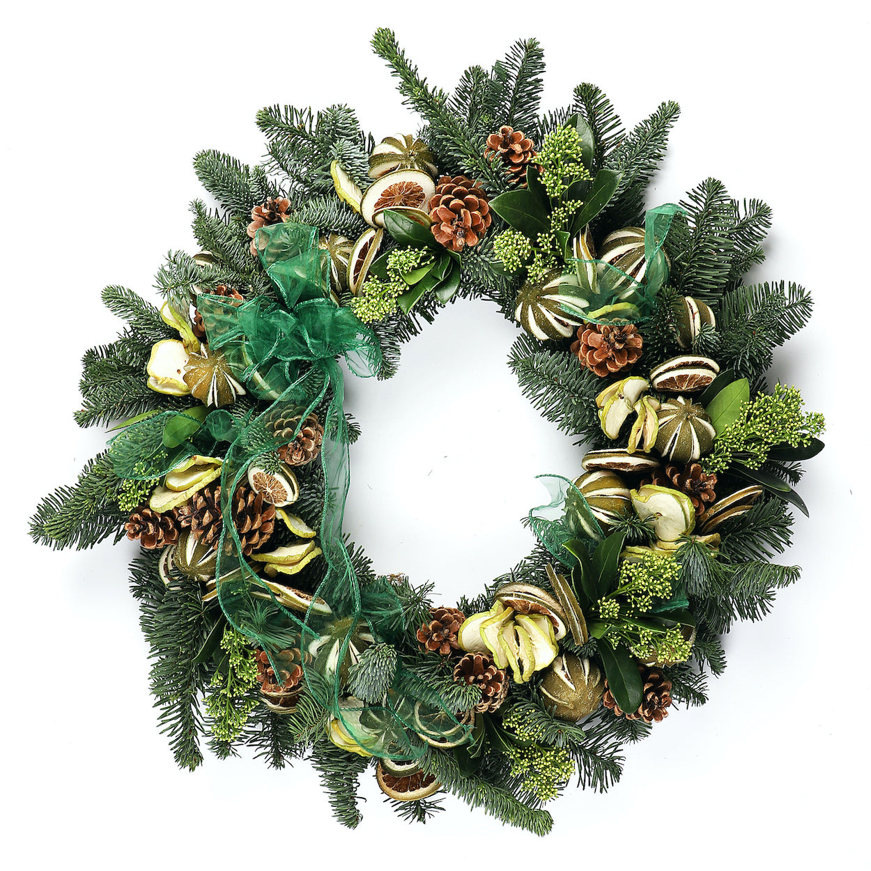 Our gorgeous Christmas wreath comes alive with colours and textures from the forests. It contains freshly sourced blue pine and skimmia which is adorned with apples, lemons and garnished with a sprinkling of pine cones.
