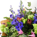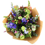 Presenting the "Michanicou Bros" bouquet—a stunning mix of delphinium, lisianthus, ammi, and antirrhinum. A classy tribute to our retired green grocer neighbour of 40 years. Delicate delphiniums dance, lisianthus layers speak of shared memories, ammi brings joy, and antirinum stands for strength. Wishing them golden years as vibrant as this bouquet. Cheers to a blooming legacy!
