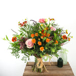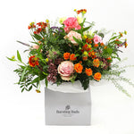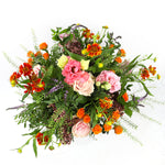 Handcrafted at our Holland park store, each bouquet is arranged to highlight the natural elegance of every stem. The vibrant orange and pink flowers create a warm yet romantic palette, while the mint and green tones add freshness and texture.