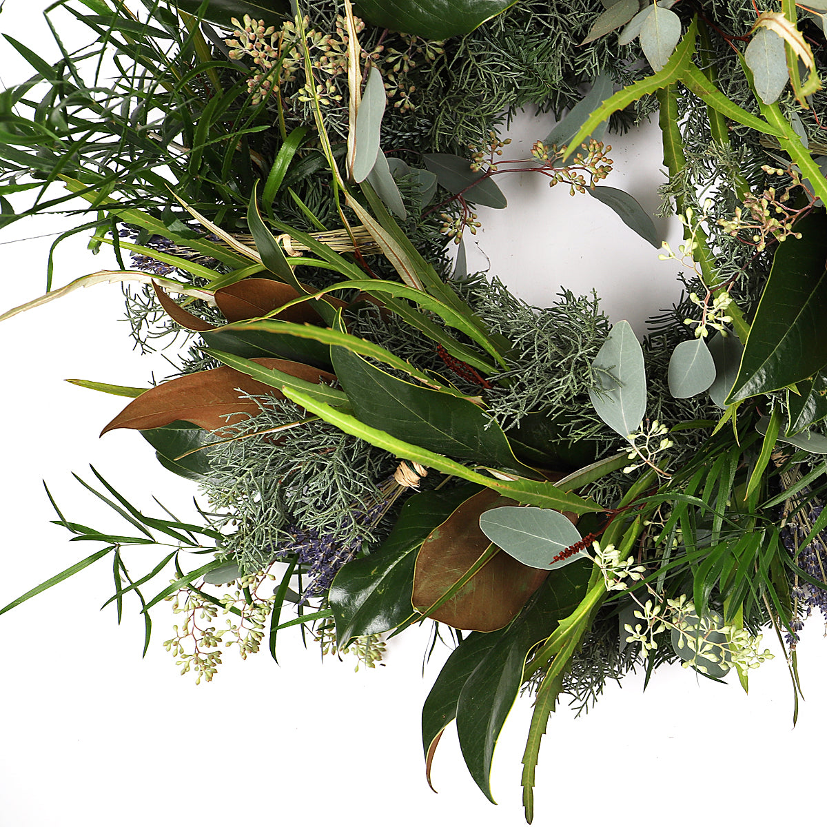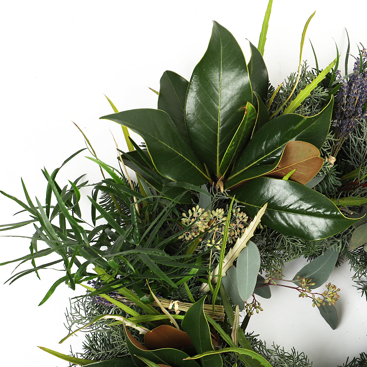 Meet our The Greens Christmas Wreath, a fusion of freshness and style. Crafted with a mix of lush fresh pine, fragrant eucalyptus, delicate dried lavender and an array of verdant greens. Embrace the season with this stylish fusion of traditional charm and modern flair.